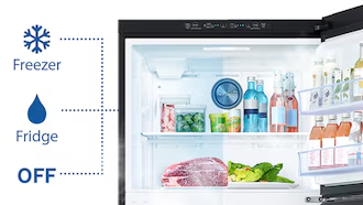 Proporciona lo último en almacenamiento flexible. Convierte fácilmente tu congelador en un refrigerador para guardar todos los alimentos frescos que necesites en diferentes temporadas u ocasiones especiales. Aplica a TMF con Twin Cooling y puede tener 3 o 5 modos dependiendo el modelo.