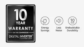 Disfruta de la eficiencia energética y de un rendimiento duradero. El compresor Digital Inverter ajusta de forma inteligente la velocidad de funcionamiento en respuesta a la demanda de refrigeración y está respaldado por una garantía limitada de 10 años para las piezas.
